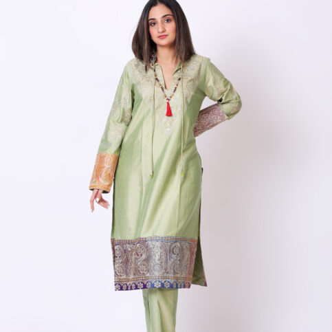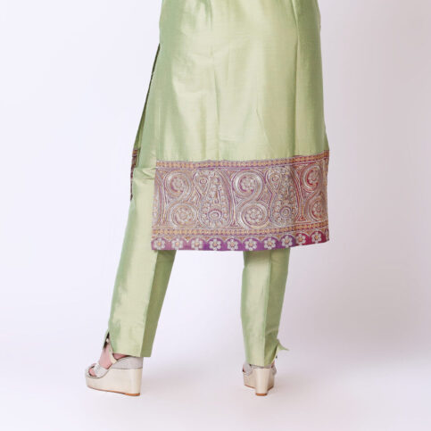 Blended silk pencil cut basic trouser with darted pockets works as a perfect coordinate to your wardrobe for almost any item & worn as a complete set for festive & for almost any occasions.