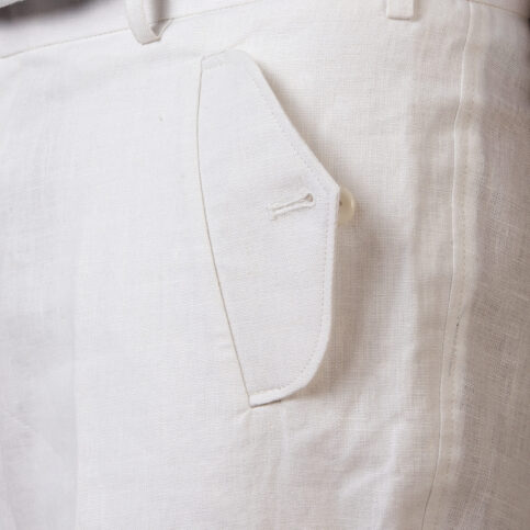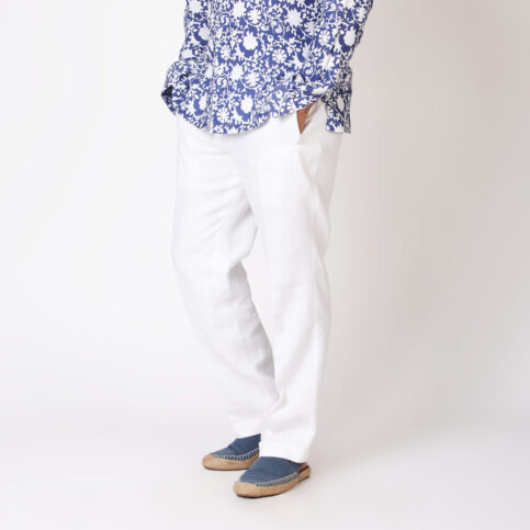 Canvas casement linen classic crease front cigarette leg cut with side seam pocket trouser, unlined & breathable is an all time classic, smart & elegant easily be worn for many occasions like lounge, cruise, city, travel, work or party and easy to coordinate with many items in our collection.
