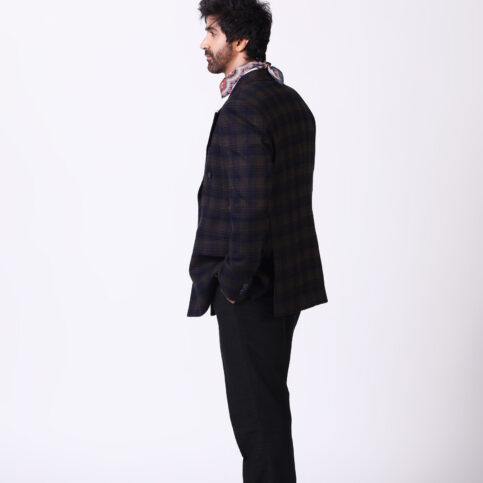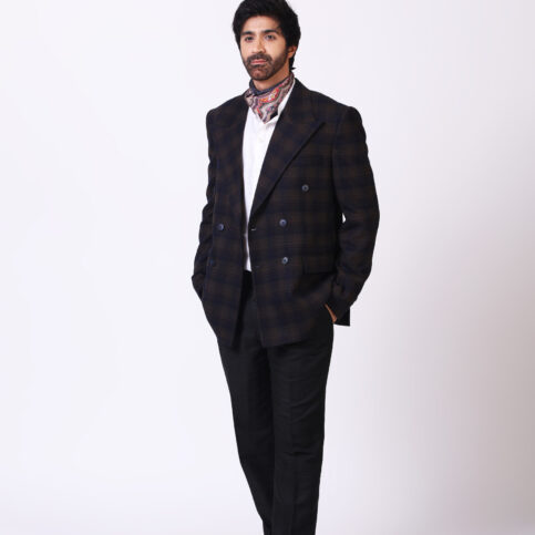 Fine mohair & cashmere check plaid wool, double breast blazer jacket with logo jacquard lining. This item is easy to coordinate with many items in our collection & can easily be worn for occasions of city, corporate, cocktail, party or festive & formal wear.