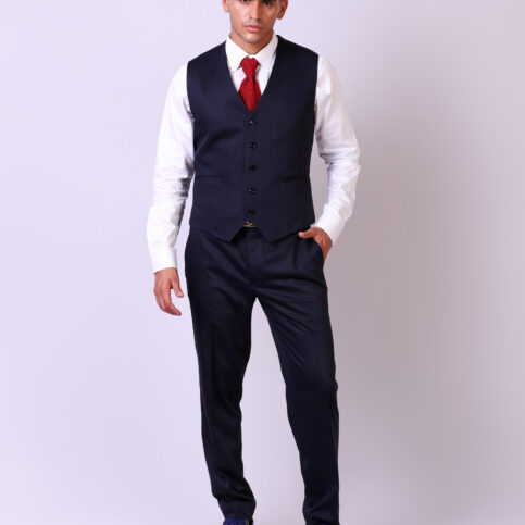 Blended wool classic gilet with vent pockets, 5 button pointed & lined in jacquard satin. This item is a clear smart gilet easy to coordinate with many items & best worn for city, work or formal occasions.