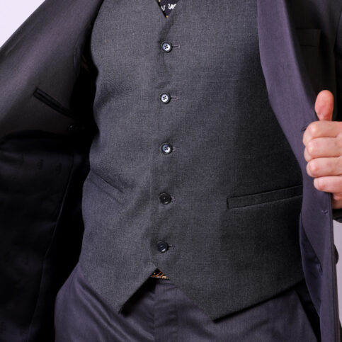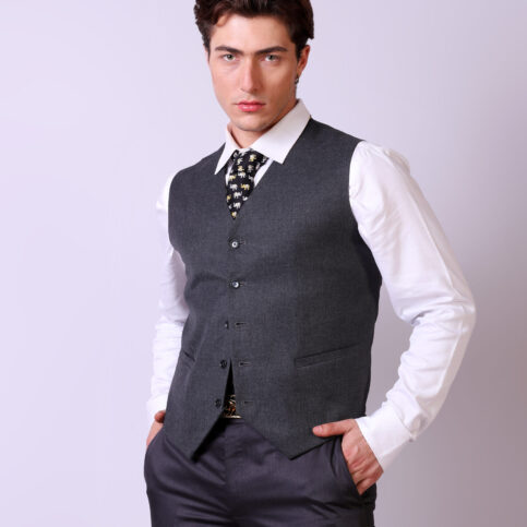 Blended wool classic gilet with vent pockets, 5 button pointed & lined in jacquard satin. This item is a clear smart gilet easy to coordinate with many items & best worn for city, work or formal occasions.