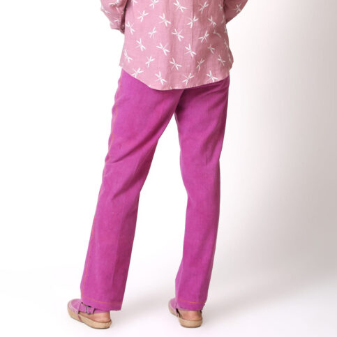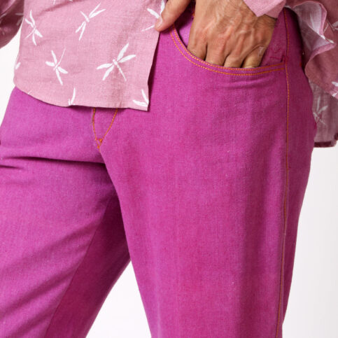 Cotton canvas cigarette leg cut jeans trouser with coconut topstich details. This is a casual & sporty smart trouser to wear on occasions of city, work, travel & party.