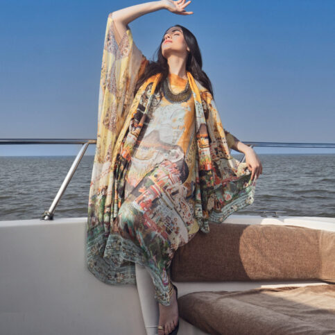 Gold gilded snake scales embroidered sun necklace, a strong statement item to wear on occasions of lounge, city, party, festive or formal.
