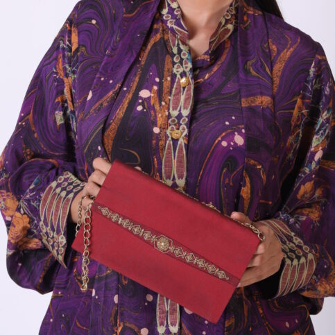 Hand Embroidered & oner encrusted velvet evening clutch purse, a treasure of a statement for festive & formal occasions.