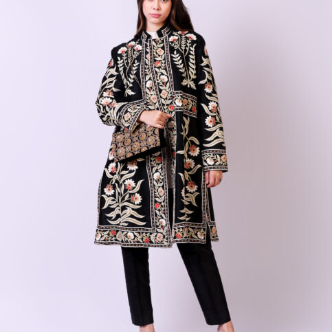 Hand Embroidered & oner encrusted velvet evening clutch purse, a treasure of a statement for festive & formal occasions.