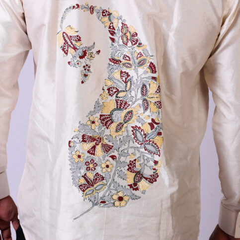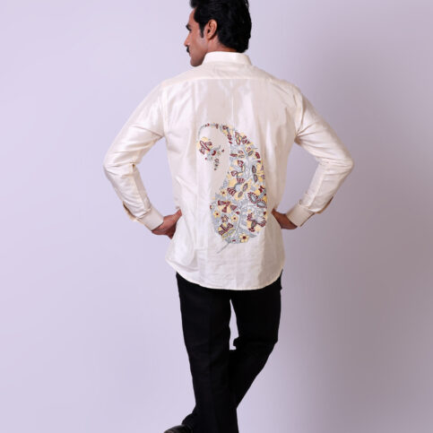 Handpainted Paisley on pure spun silk classic long sleeve shirt with Mother of Pearl buttons. This item is a luxury trend which can be coordinated with many items in our collections & worn for occasions of lounge, cruise, city, party & festive.