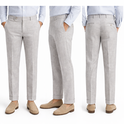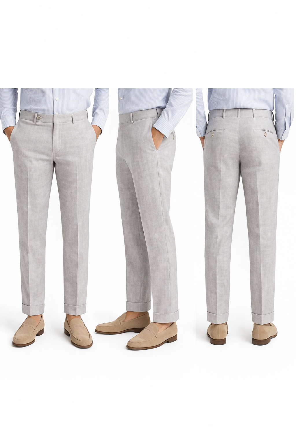 Hand woven raw matka silk classic cigarette leg trouser with side tilt pockets & clean flat front cut , these trousers are a classic fashion quality conscious individuals statement , easily worn with many items in our collections for occasions of City , work , cocktail & party .
