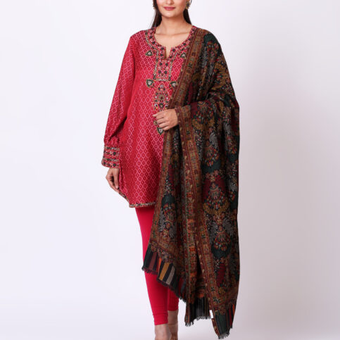 Handwoven pashmina finewool kani shawl, a warm embrace of elegance with designs & coordinated to the tunic set ideally worn for occasions of city, festive & formal.