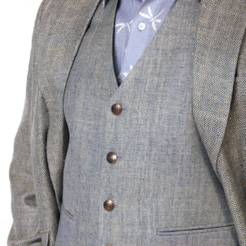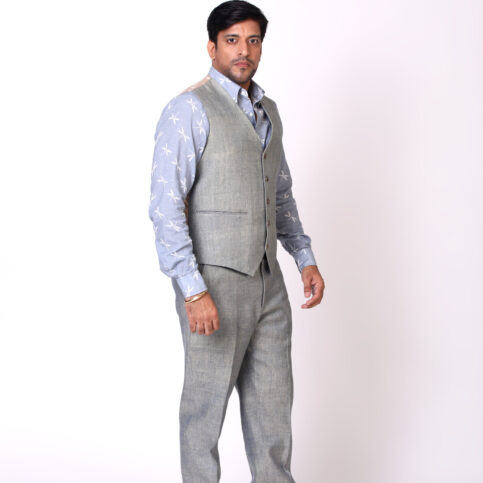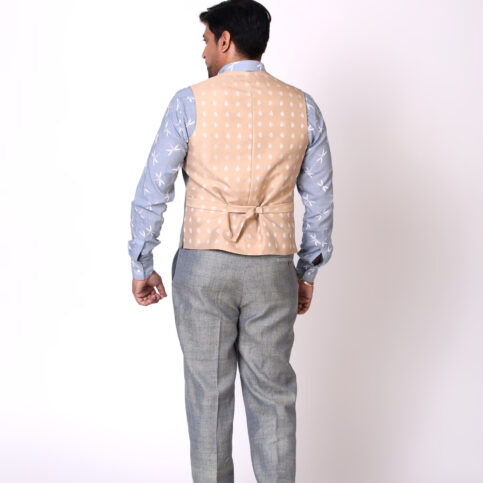 Handwoven casement refined raw silk classic gilet with vent pockets & lined in jacquard satin. This item is a clear smart gilet easy to coordinate with many items & best worn for city, work, festive or formal occasions.