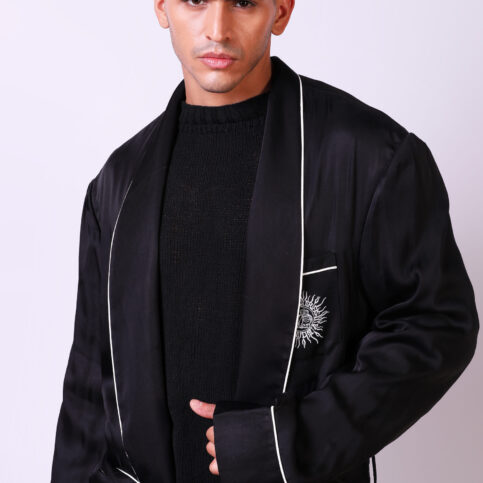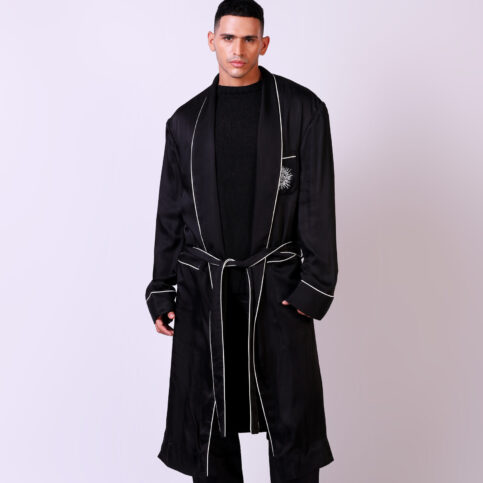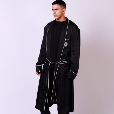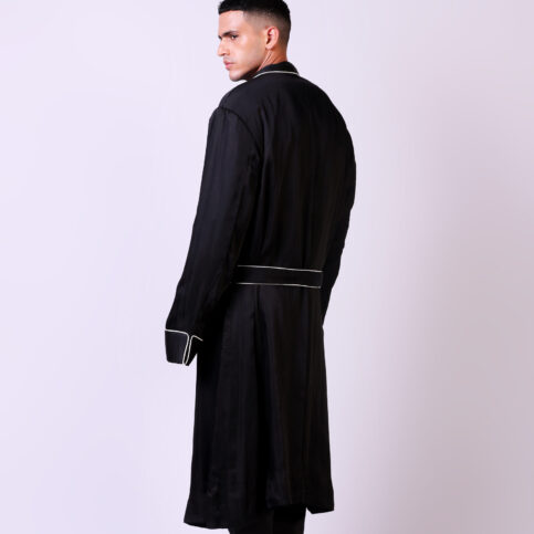 This item, regal in its making, is an ideal lords dressing gown easily worn with pyjamas as well for resort, lounge and cruise home wear.