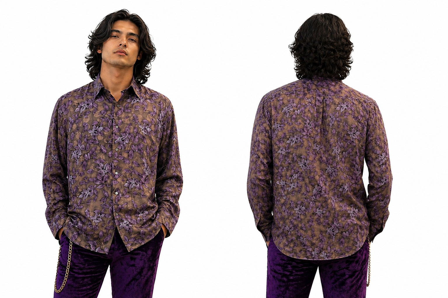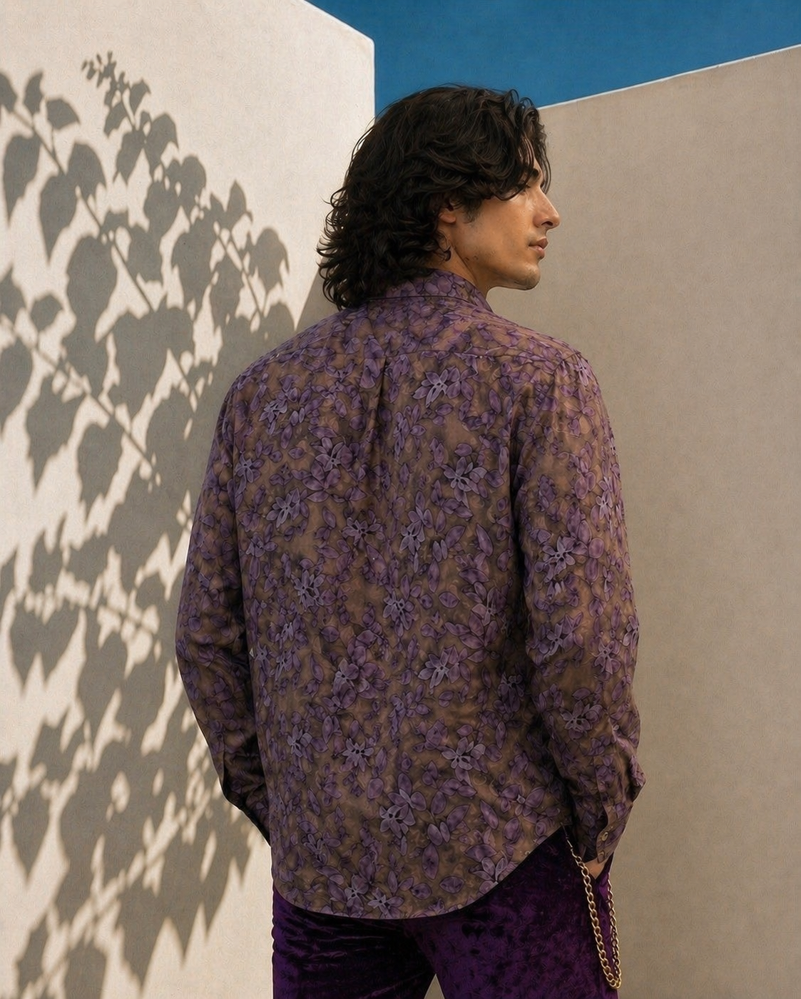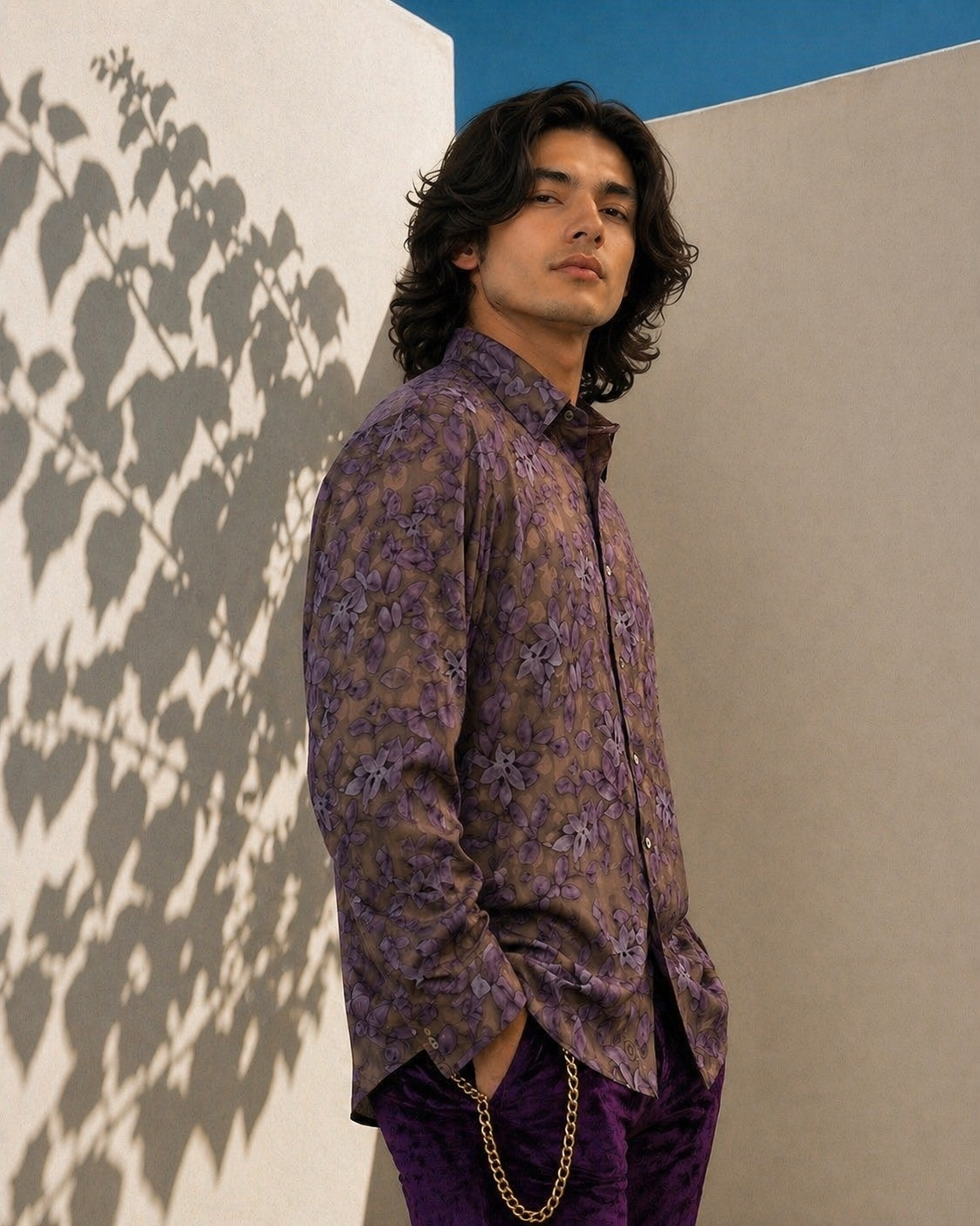 Mens polk satin silk jacquard shadow leaf print long sleve , collar band loop dress shirt , is an ideal elegant item for evening cocktail & party ware