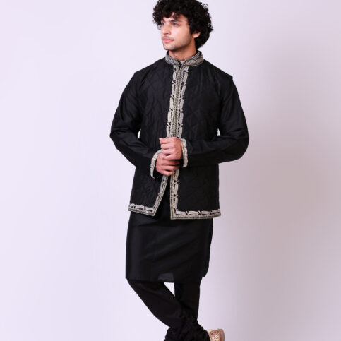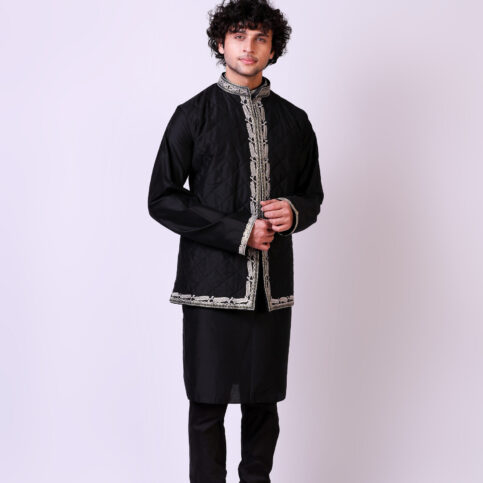 This item is made of handwoven pure spun silk with intricately embroidered. It is traditional in its look and can easily be worn over kurtas and shirts alike and is an elegant item for festive, party and formal occasions.