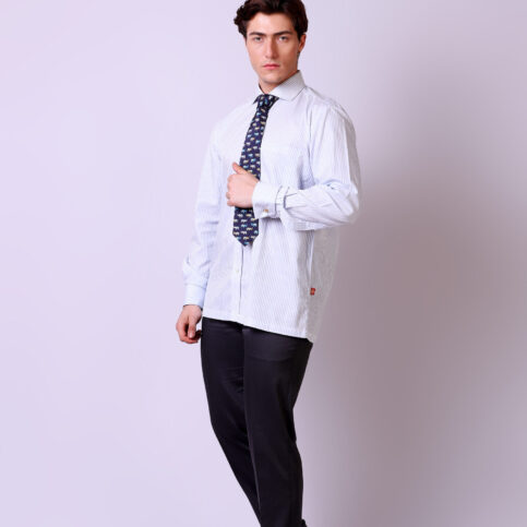 This shirt in fractal silk jacquard with chevalier print is a long sleeve classic elegant shirt ideally worn for occasions of cocktail & part .