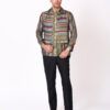 Silk satin ikat printed jacket with darted pocket, lapel collar and lined in satin. This item can be worn as an elegant statement item coordinate to tunics, blouses for any occasions.