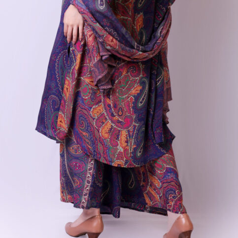 Jamawar Printed blended wool shawl, a warm embrace of elegance with designs & coordinated to the tunic set ideally worn for occasions of city, festive & formal.